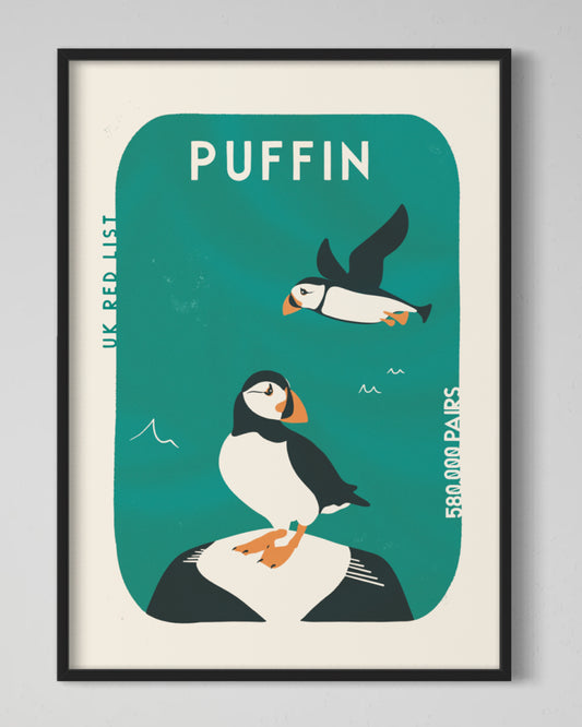 Puffin Retro Wildlife Print
