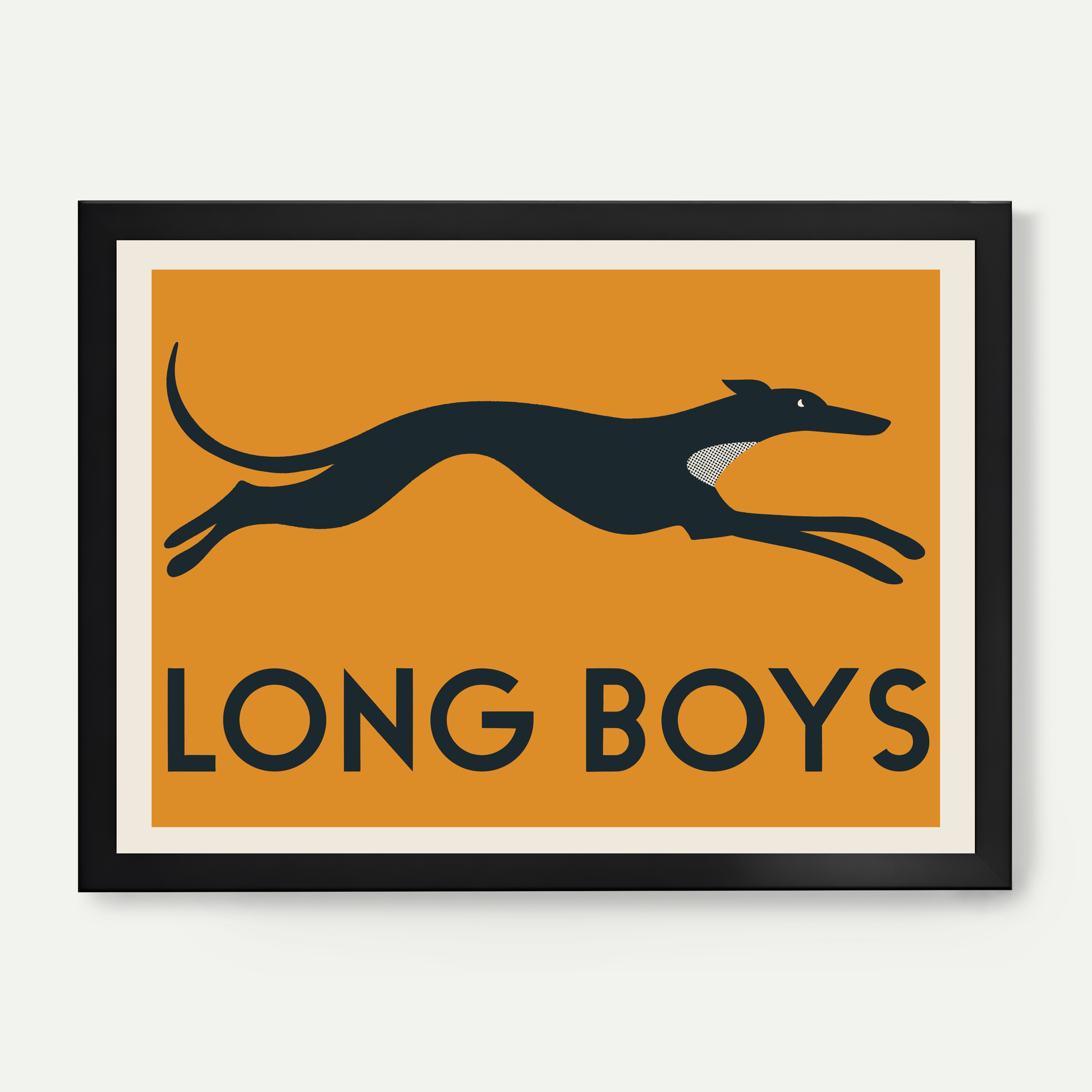 Celebrating our long legged friends. Featuring a classic grey hound, this print is bold and impactful.